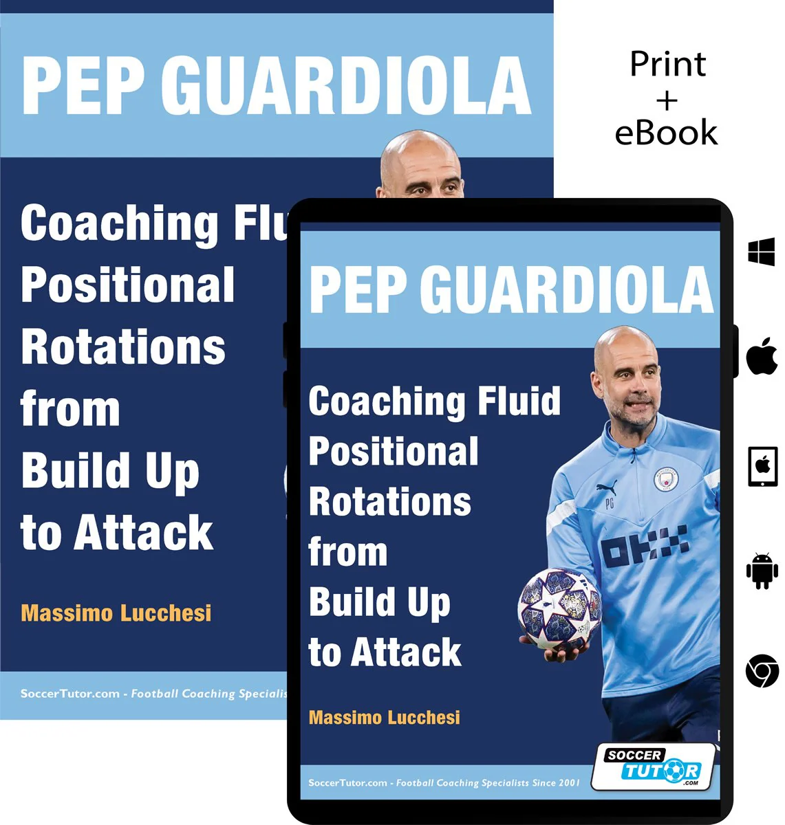 Football tactics expert Massimo Lucchesi provides a detailed tactical analysis of Manchester City’s positional rotations, covering build-up play, midfield progression, and attacking combinations in the final third. With 100+ Tactical examples and 50 Practices and Variations, this is a comprehensive guide to coaching Pep Guardiola’s positional play principles.